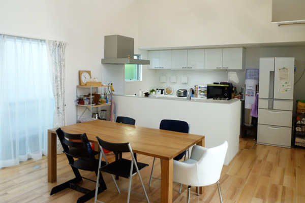 30代のご夫婦Hさん。3年前に2人目のお子様が生まれ、それまで住んでいた集合住宅も手狭になってきました。近くに住む独り暮らしのお母様と一緒に住む事の出来る戸建住宅の購入を決心し、1年間、設計士さんと打ち合わせを重ねこだわりのスタイリッシュな2世帯住宅が完成しました。