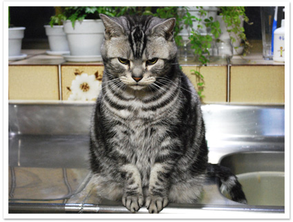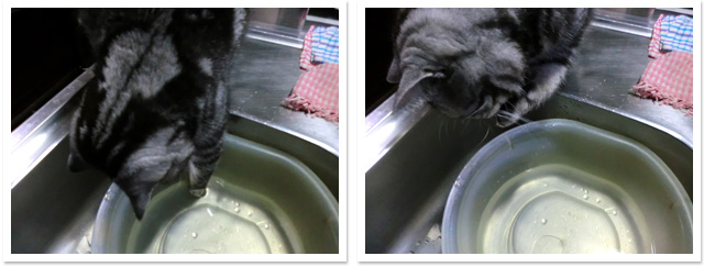流し台が猫の水飲み場所です、手ですくって水を飲む動作がまたなんとも面白いです。