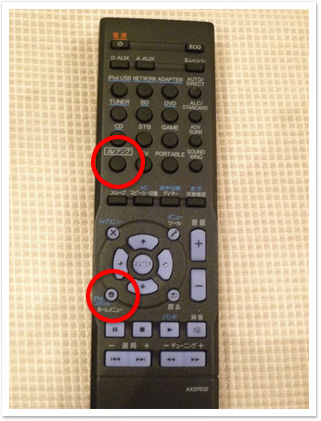 リモコンのAVアンプボタンを押してから、ホームメニューボタンを押してホームメニュー画面を表示します。