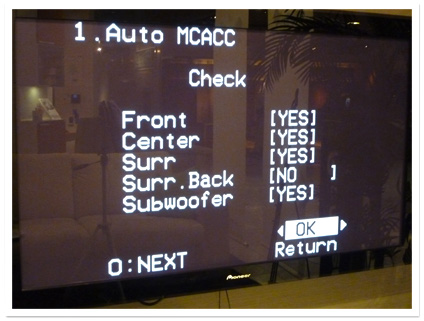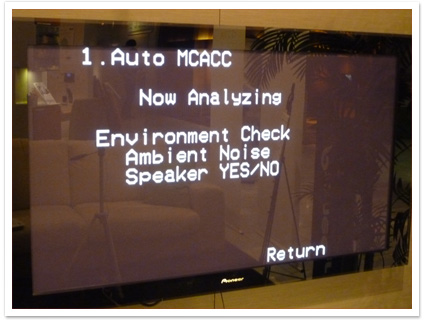テストトーンを出しながらスピーカーシステムの測定を開始します。各スピーカーから順番にザー、ゴォーといった大きな音がでますのでびっくりしないように心の準備をします。