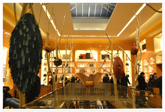 市内ではブランドショップ店内もサローネ色に染まります。 ルイ・ヴィトンは「デザイン・マイアミ」で発表したコラボレーションデザインがディスプレイになっていました。