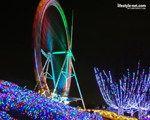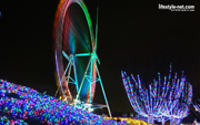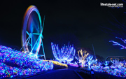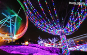 最近郊外の遊園地がイルミネーションでデコレート! 冬の乾いた空気で遊園地がピカピカと輝いています。