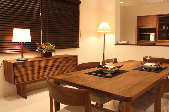 また、最近は素材そのものの触感や木目を楽しむお客様が増えてきたそう。こちらのコーディネートに使用した、ウォールナットのサラっとした感触と個性的な木目も人気の秘密です。