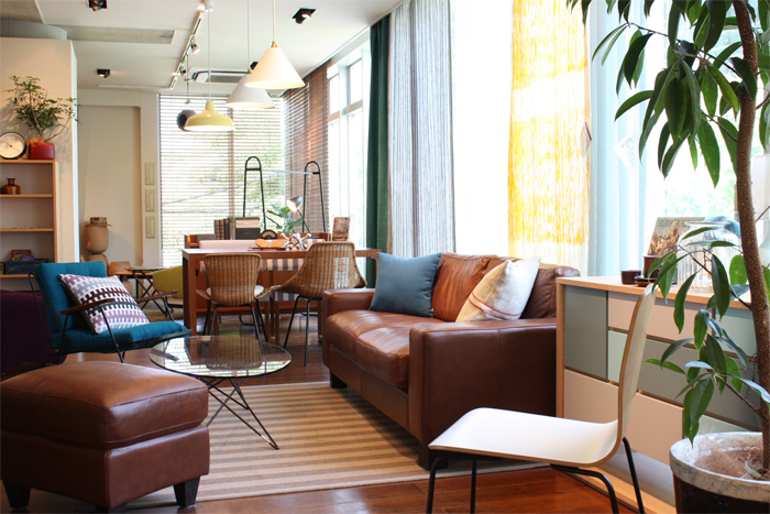 自由が丘店はイデー最大の約200坪の売り場を持つ、フラッグシップショップ。オリジナル家具や生活雑貨が多数展示され、ファブリック、アンティーク、アート、書籍、CDも充実。3層のフロアをまわれば、イデーの世界観が体感できます。
