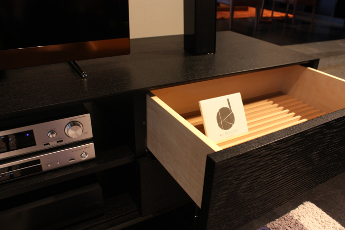 引き出しの中にはCDを立てて収納できる溝のある板が付いています。(一箇所のみ付属)