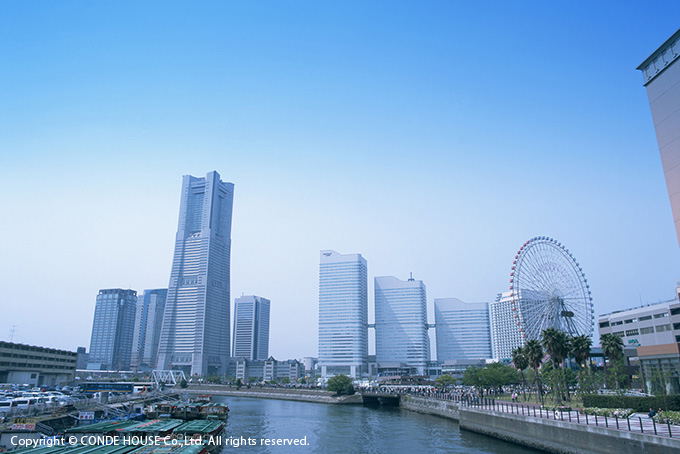 カンディハウス横浜は、みなとみらいを象徴する大観覧車「コスモクロック21」からほど近いクイーンズスクエア内、クイーンズタワーA棟の3Fにあります。(写真中央の高いビル)東急東横線直通みなとみらい線のみなとみらい駅に直結しているので、アクセスはとても便利です。海が広がり異国情緒あふれる横浜の街並みと、新しい商業施設やテーマパークが融合したみなとみらいは、お散歩にも楽しいエリアです。