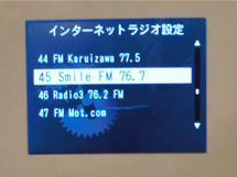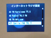③画面にチャンネルリストが表示されます。「47番」に登録されている「Smile FM 76.7」を使ってご説明します。「▽」ボタンでチャンネルを選択し「決定」ボタンを押します。