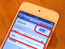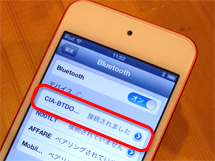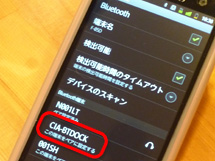 ②「Bluetooth」をオンにするとペアリング待機状態のデバイスが検出されます。"CIA-BTDOCK"を選択。