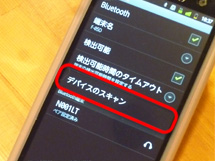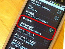 ①「設定」→「無線とネットワーク」→「Bluetooth」をONにして「Bluetooth設定」を選択。