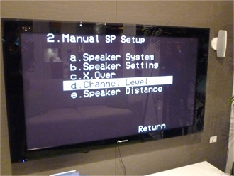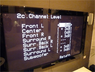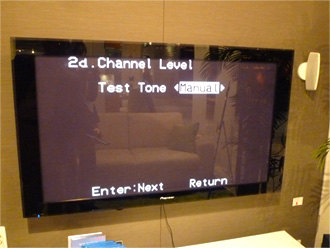 調節したいスピーカーを選んでテストトーンを聴きながらリモコンの“←”“→”ボタンで出力レベルのプラス、マイナスを自分好みに設定します。